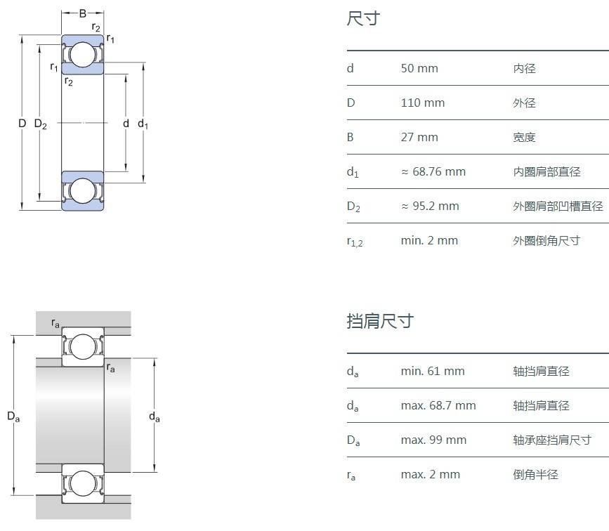 SIAIF不銹鋼深溝球軸承 S6310-2Z 詳細參數