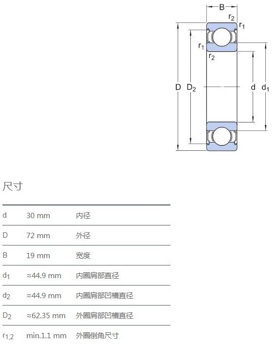SIAIF不銹鋼深溝球軸承 S6306-2Z 詳細參數
