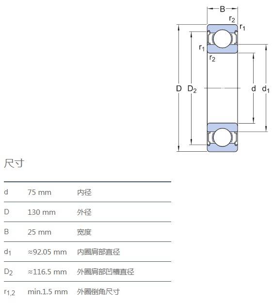 SIAIF不銹鋼深溝球軸承 S6215-2Z 詳細參數