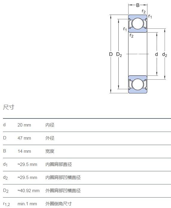 SIAIF不銹鋼深溝球軸承 S6204-2Z 詳細參數