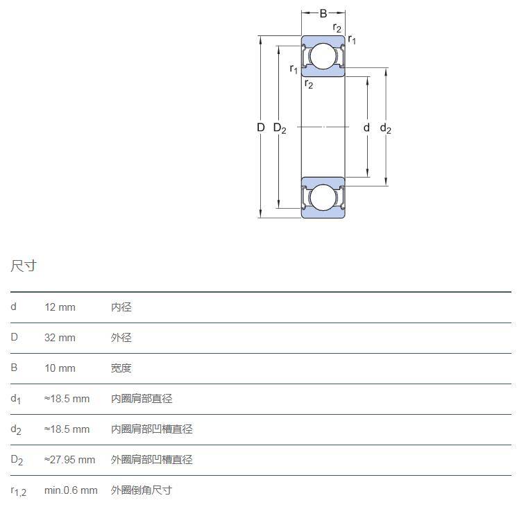 SIAIF不銹鋼深溝球軸承 S6201-2Z 詳細參數